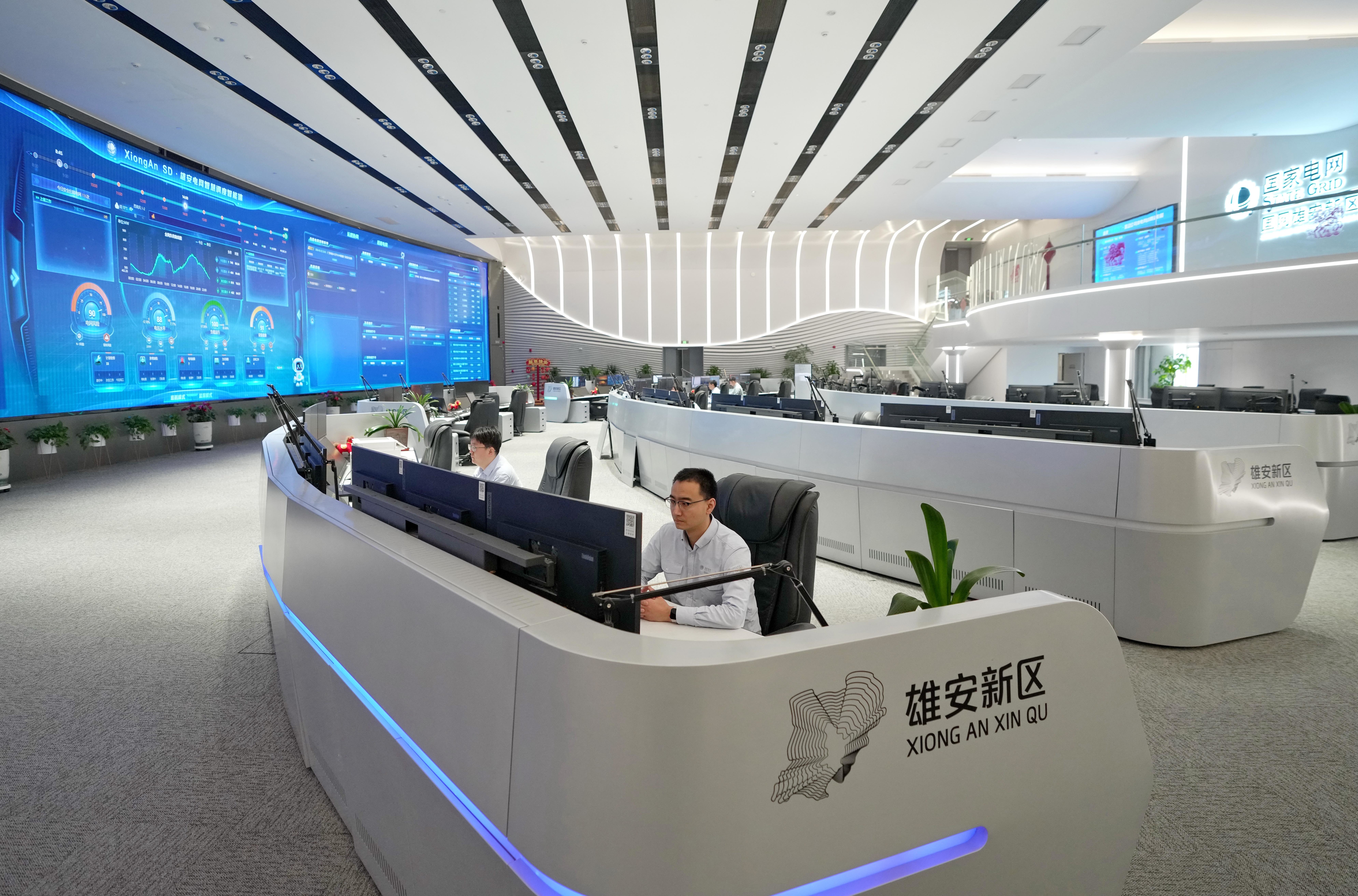 3月24日,国网雄安新区供电公司职工在电力转化大厅职责。